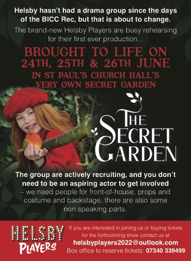 The Secret Garden was the Helsby Player’s first production. We performed it in June 2022 in St Paul’s Church Hall, Helsby.