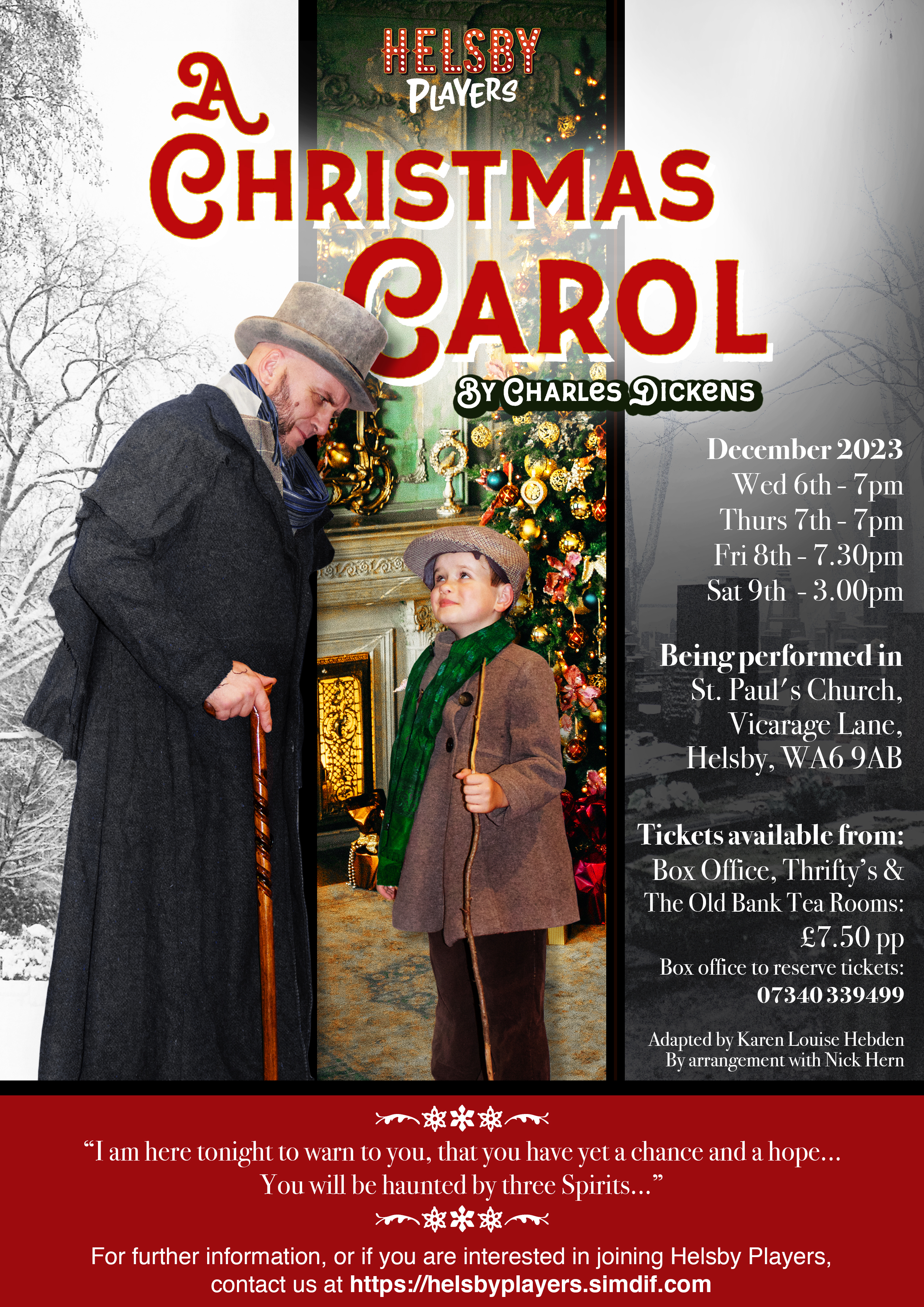 A Christmas Carol was the Helsby Player’s fourth production. We performed it in December 2023 in St Paul’s Church, Helsby. During this show, the Helsby Players were joined by members of the Helsby Choir, who sang live carols as part of the performance.